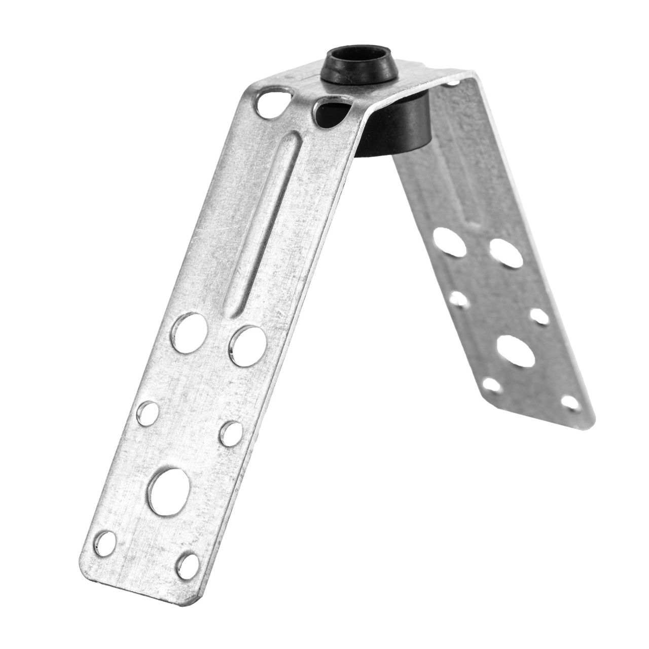 V-образный кронштейн с виброизолятором под среднюю нагрузку (до 230 кг) предназначен для монтажа воздуховодов. Крепеж изготовлен из оцинкованной стали с защитным слоем покрытия 8-10 микрон и резиновым виброгасителем, который предохраняет резьбовые шпильки от соприкосновения с элементами вентиляции, что значительно снижает передачу вибрации и шума. Крепление производится саморезами или заклепками к воздуховоду, могут крепиться непосредственно на потолок.