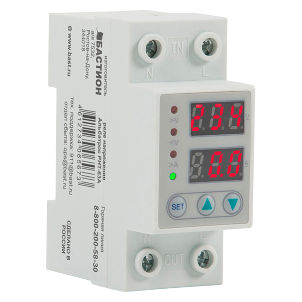 Реле напряжения АЛЬБАТРОС РНТ-63А предназначено для защиты нагрузки от скачков и провалов напряжения и от перегрузки по току путем отключения нагрузки. Изделие имеет функцию автоматического восстановления после срабатывания.