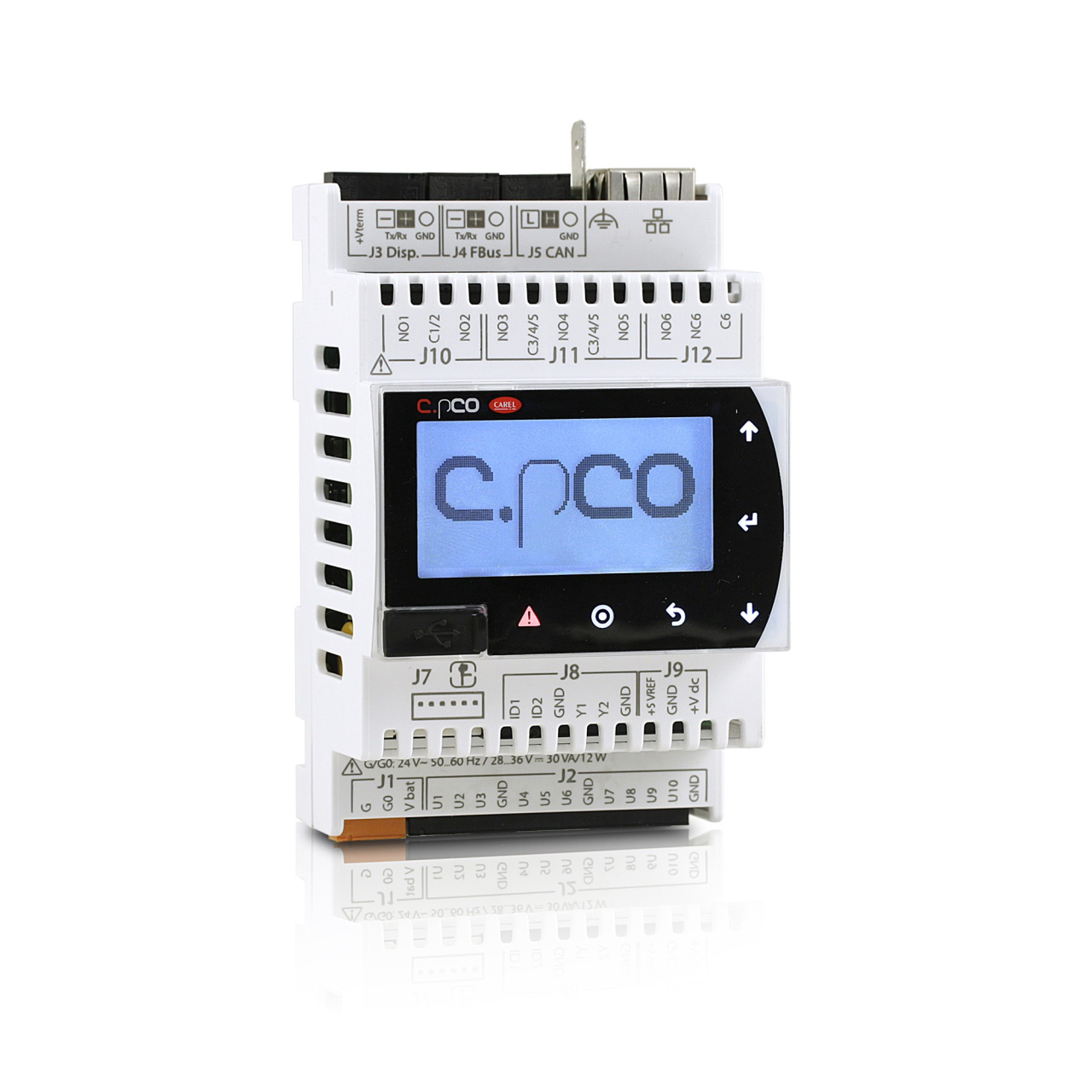 c.pCOMini – это электронный программируемый контроллер, выпускаемый компанией CAREL для систем отопления, охлаждения и кондиционирования воздуха. Контроллер поддерживает множество вариантов настройки, поэтому подходит для управления любой системой с учетом конкретных требований. Контроллер c.pCOMini предусматривает возможность конфигурирования входов и выходов, поддерживает терминалы семейства GD1 и может обмениваться данными с другими устройствами по трем последовательным портам, портам CANbus и Ethernet.