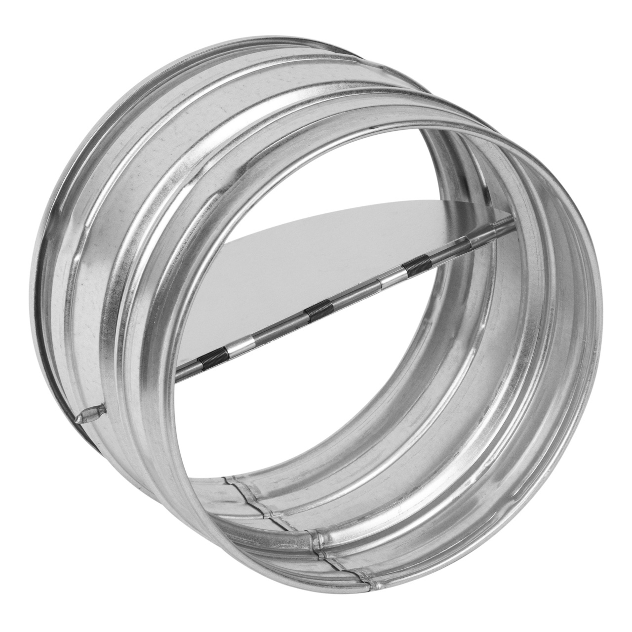 Обратный клапан с подпружиненными лопастями предназначен для автоматического перекрывания круглых воздуховодов при отключении систем вентиляции. Корпус клапана выполнен из оцинкованной стали, лопасти из листового алюминия. Крепление клапана к другим элементам системы вентиляции производится при помощи ниппельного соединения. Клапан может быть установлен в вертикальном положении.
